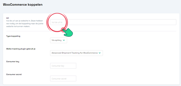 5. Daarna kies je het type koppeling dat je wilt maken, er zijn twee mogelijkheden: via een apikey of via een plugin die je downloadt en vervolgens aanmaakt in je Woocommerce.