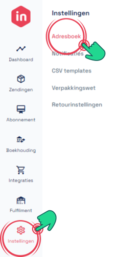 1. Klik in het linkermenu op 'Instellingen' en dan op 'Adresboek'