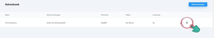 1. Als je een contact permanent wilt verwijderen uit je adresboek, klik je op het prullenbak-icoontje dat staat in de rij van het adres dat je wil verwijderen