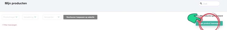 2. Om deze producten aan te maken klik je rechtsboven op de groene knop met 'Eigen product toevoegen'